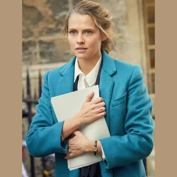 The striking blue color adds a fresh and sophisticated touch, perfectly capturing Diana Bishop’s poised and commanding presence. Known as the A Discovery of Witches Coat, Blue Wool Long Coat Women, and Teresa Palmer Diana Bishop Coat, this coat is a must-have for fans and fashion enthusiasts alike. Combining cinematic inspiration with everyday style, it allows you to embrace the magical essence of the series while staying effortlessly chic. A perfect fusion of elegance, comfort, and screen-inspired flair.