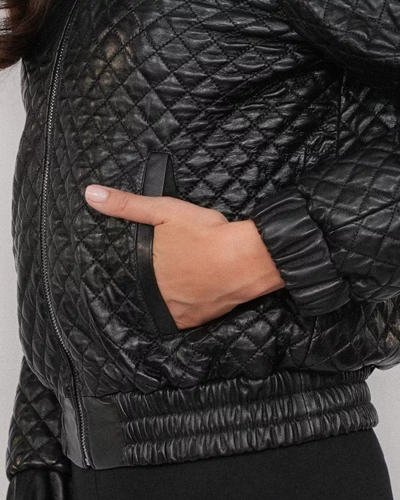 Be the first to review “Black Quilted Leather Bomber Jacket Women”