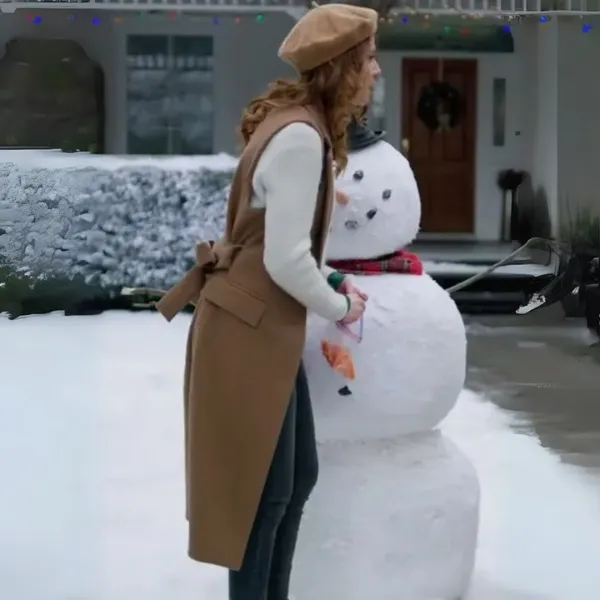 Film 12 Dares Of Christmas 2023 Brittany Underwood Brown Sleeveless Coat