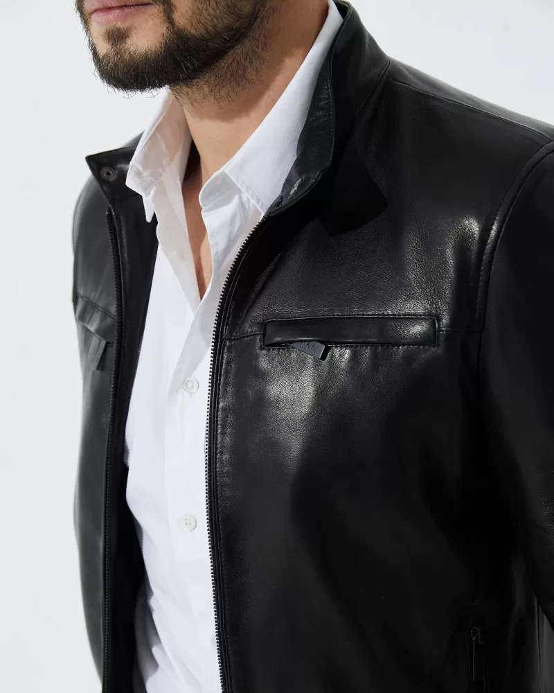 Premium Classic Black Men’s Leather Jacket in Lambskin