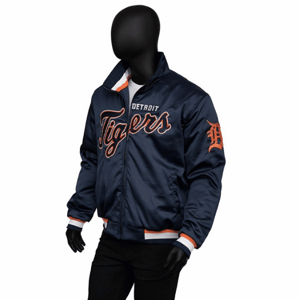 Detroit Tigers Blue Satin Zip-Up Bomber Jacket
