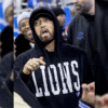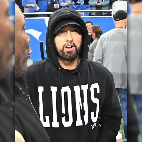The hoodie features a classic black base, giving it a clean and timeless look. On the front, it proudly displays the “Lions” initials, paying tribute to Eminem’s favorite football team, the Detroit Lions. It includes a standard hood with adjustable drawstrings, allowing you to style it to your comfort. The front design also highlights the Lions name along with a small white logo underneath, creating a bold contrast against the black fabric. Stylish, comfortable, and meaningful, this hoodie is perfect for any Eminem fan.