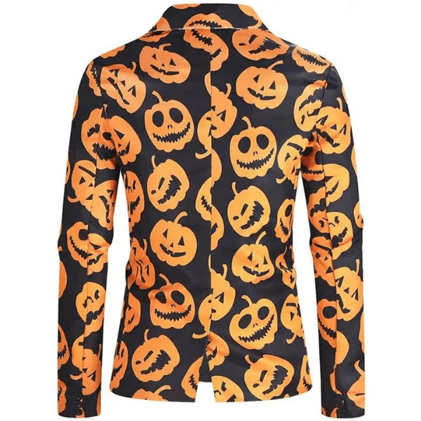Its vibrant orange and black color scheme makes it instantly recognizable, while the playful pumpkin-themed design makes it a must-have for October festivities. The two waist pockets add both style and practicality, allowing you to keep essentials close while you enjoy the night. Whether you’re heading to a themed event, trick-or-treating with friends, or simply looking to stand out at a seasonal gathering, this blazer captures the spirit of Halloween with elegance. Elevate your spooky style with the Pumpkin Print Blazer, make a bold entrance in the Halloween Party Blazer, and embrace festive charm with the Spooky Fashion Blazer—a true Halloween classic.
