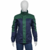 The jacket features a stand-up collar, a smooth front zipper closure, and long sleeves with elastic cuffs for a snug, athletic fit. With two convenient waist pockets and a bold green and blue color scheme, it mirrors the original screen-worn look with authentic detail. Whether you’re a die-hard fan of the series or just want to add a unique statement piece to your wardrobe, this Squid Game Jacket is an iconic choice.