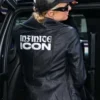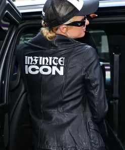 Unleash bold celebrity energy with the Infinite Icon Paris Hilton Black Leather Jacket, a standout piece inspired by Paris Hilton’s iconic status and fashion influence. Crafted from premium genuine leather, this jacket delivers a luxe feel and durable design that ages beautifully over time. The striking Infinite Icon print on the back adds statement appeal, celebrating Hilton’s cultural impact while elevating your outfit with rock-star edge. The hybrid zipper with button closure gives you versatile styling options — zip up for warmth or leave buttons fastened for a more refined look. Generous lapels and reinforced stitching ensure lasting wear, while the premium viscose lining keeps you comfortable all day long. Two side pockets provide practical storage for essentials. Finished in classic black, this jacket pairs seamlessly with jeans and boots for daily style or layered over dresses for standout night looks.