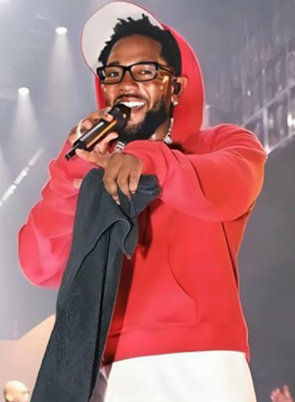 Bold Kendrick Lamar-inspired red streetwear hoodie