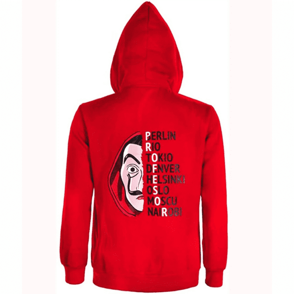 Step into the world of high-stakes drama with the Money Heist Hoodie for Men and Women, inspired by the global hit series La Casa de Papel. Worn by the daring heist crew, this hoodie is a striking blend of style, comfort, and iconic symbolism, making it the perfect choice for fans and Halloween costumes alike.