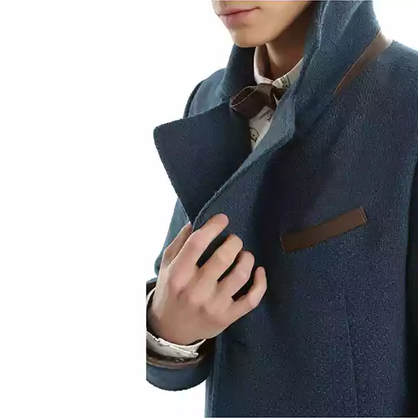 Step into the magical world of wizardry with this beautifully crafted Eddie Redmayne Blue Wool Coat, inspired by Newt Scamander from Fantastic Beasts and Where to Find Them. Designed for fans who love style with a touch of adventure, this coat brings the charm of the famous Magizoologist to your everyday wardrobe. Made from premium blue wool, it features a rich texture and eye-catching contrast details on the cuffs and pockets, giving it a refined and timeless look.