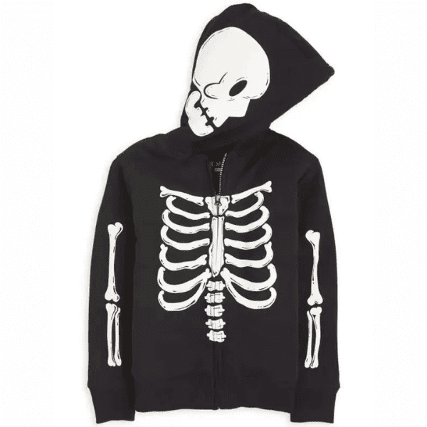 Unisex Halloween Black Zip Up Skeleton Bones Hoodie