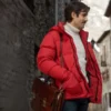 Raúl 1000 Miles From Christmas (2021) Tamar Novas Red Puffer Jacket