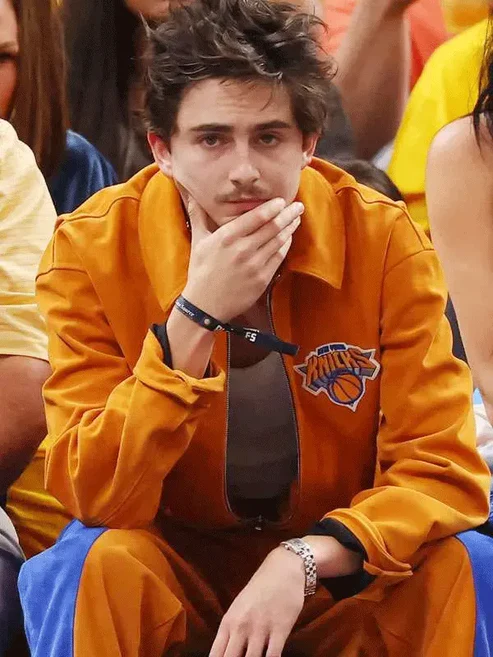Timothée Chalamet Inspired Orange Knicks Jacket Style