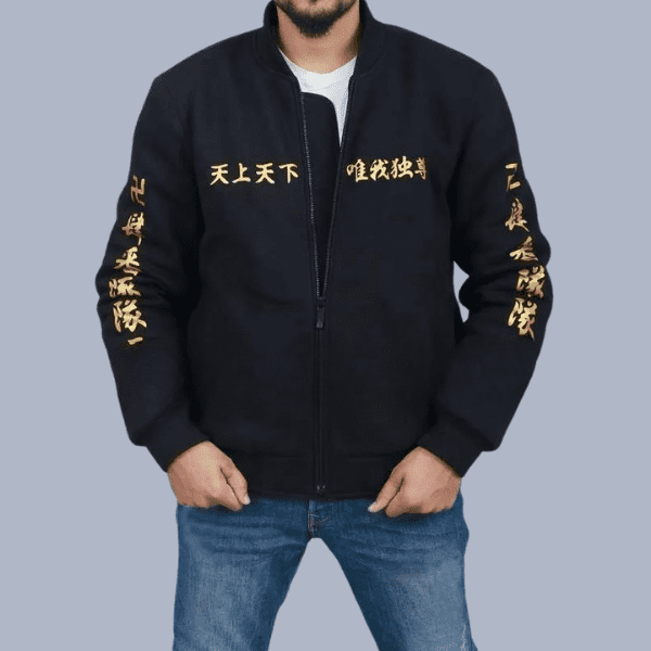 It is striking because its boldness is seen in the color black, the very tone stereotyped with the rebellious energy flowing in the Tokyo Manji Gang, thus, making it stand out amongst the other outfits of Tokyo Revengers. Intended for conventions, such a jacket also shows dedication to the series itself by keeping alive the anime vibes in reality. The perfect tribute to the daring world of time travel, friendship, and redemption, Tokyo Revengers Black Jacket is designed for fans with a flair for fashion and a craving for fandom. It’s high time to add it to the collection and wear your favorite characters with pride.