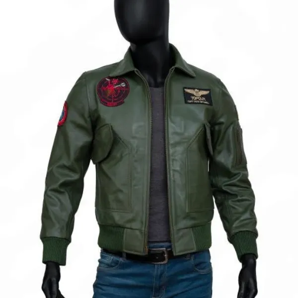Featuring a classic shirt style collar and a secure front zipper closure, the Top Gun Tom Cruise Jacket is designed for a sleek and polished look. The long sleeves paired with rib-knitted cuffs give it a snug fit, while the two waist pockets provide both practicality and functionality. Its stylish green color enhances its vintage aviator appeal, making it stand out as a true wardrobe essential for fans of military-inspired fashion.