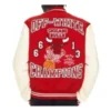 Featuring a classic rib-knitted collar and front button closure, this White Red Varsity Jacket brings a timeless varsity look with a modern twist. The long sleeves with rib-knitted cuffs add both comfort and a secure fit, making it ideal for colder weather. The two waist pockets provide functionality without compromising the sleek design, while the vibrant red color captures the Chicago Bulls’ energetic and fierce team identity.